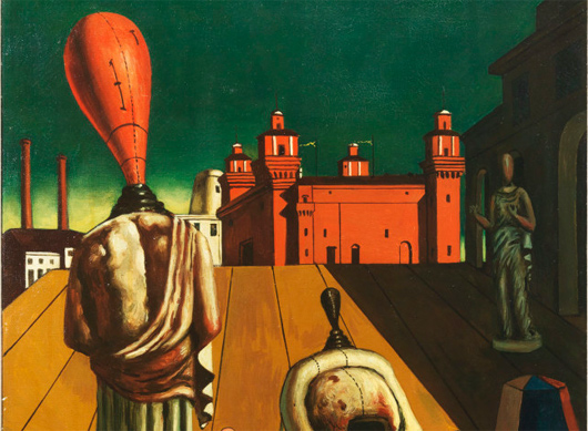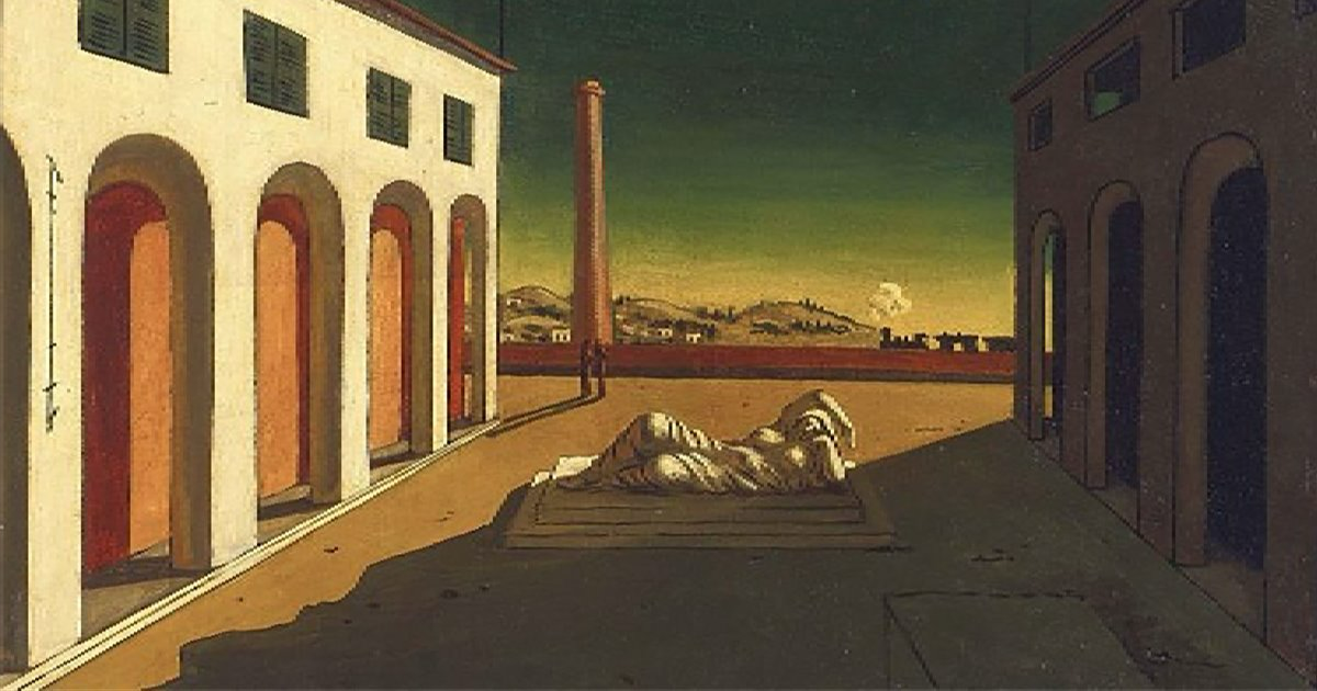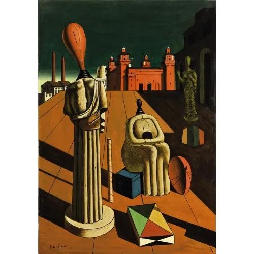 I like to talk about this work because The painter enigmatically brings several elements together, each of which symbolizes an aspect of reality: the mannequins (symbols of the human being devoid of identity), the Renaissance castle of Ferrara (symbol of culture and history) and the chimneys of a factory (symbols of the alienated work of man); in this way he intends to make us reflect on the illusory of the meaning of things. His art is called metaphysics, an adjective that means "abyond physical reality", because he wants to express the mysterious, and therefore disturbing, aspect of reality.